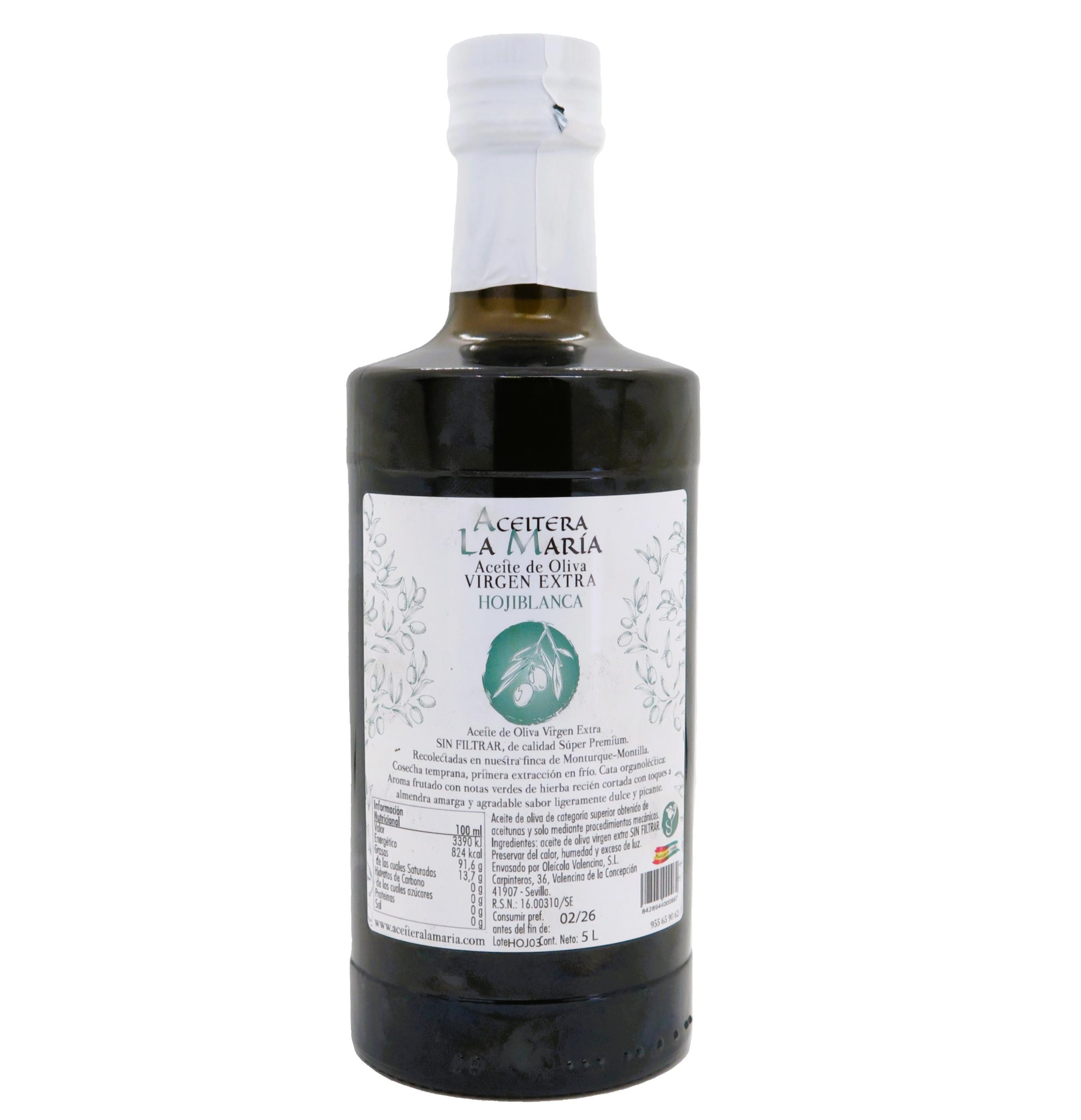 El Aceite de Oliva Virgen Extra de ACEITERA LA MARIA es un Aceite elaborado de forma tradicional. Obtenido de aceitunas de la comarca de la campiña sur cordobesa Monturque y Montilla, cultivadas de forma tradicional y mediante un proceso de primera extracción en frío. Con un grado de acidez inferior al 0,2%, lo que hace que tenga una gran concentración en polifenoles, ácido oleico, y antioxidantes naturales, que son los que producen grandes beneficios para la salud.