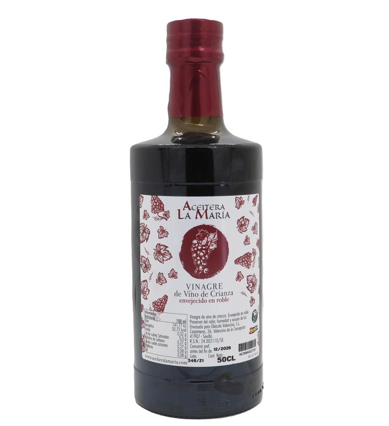 Tradicional vinagre de yema de vino de fuerte personalidad, usado durante miles de años en nuestra gastronomía, en su elaboración se usa solo el centro de la uva, más suave y delicada, cuyo factor diferencial es el envejecimiento en barrica de roble, algo que le aporta ligeros matices al paladar a madera, de color intenso y sabor intenso.